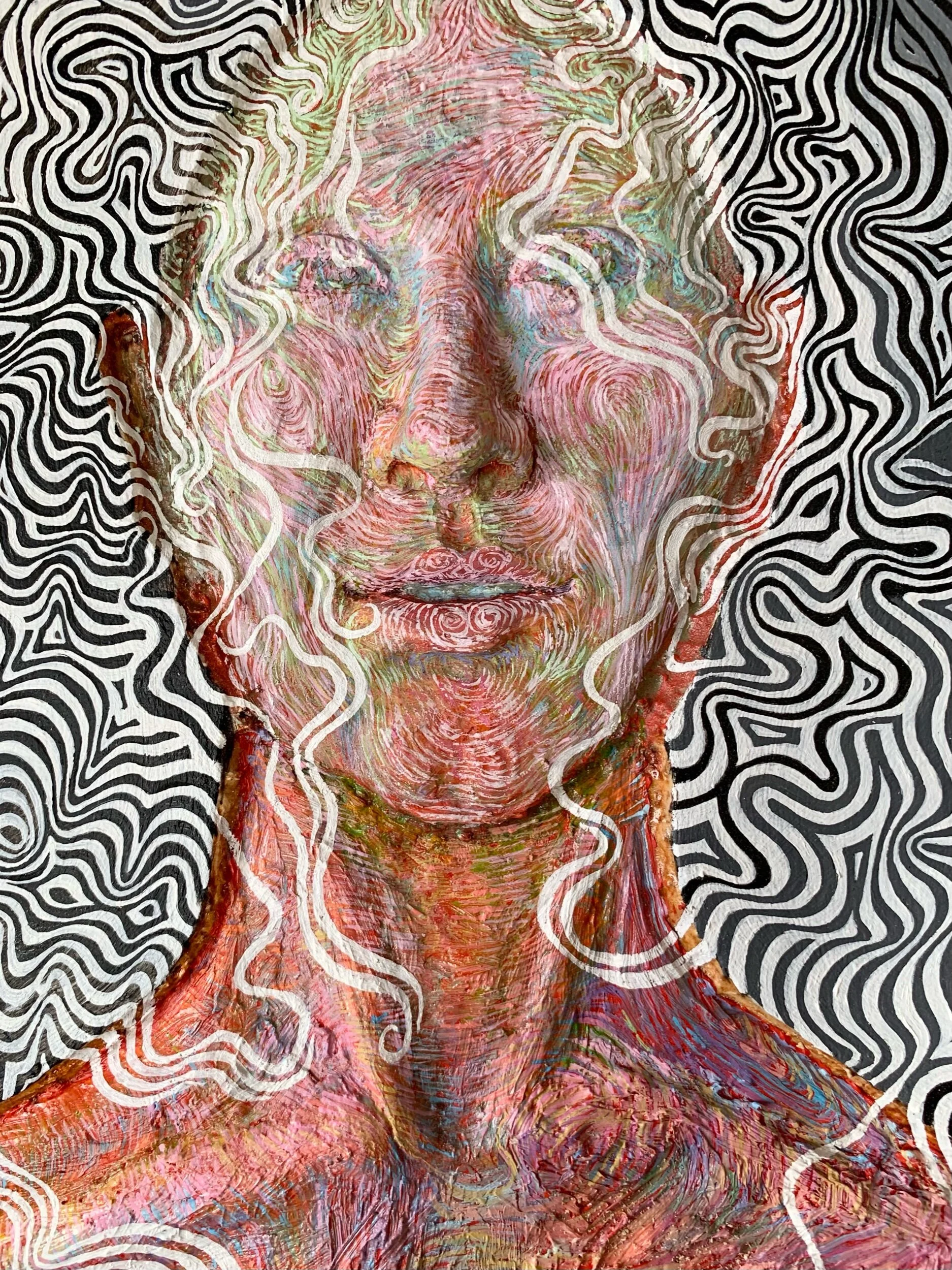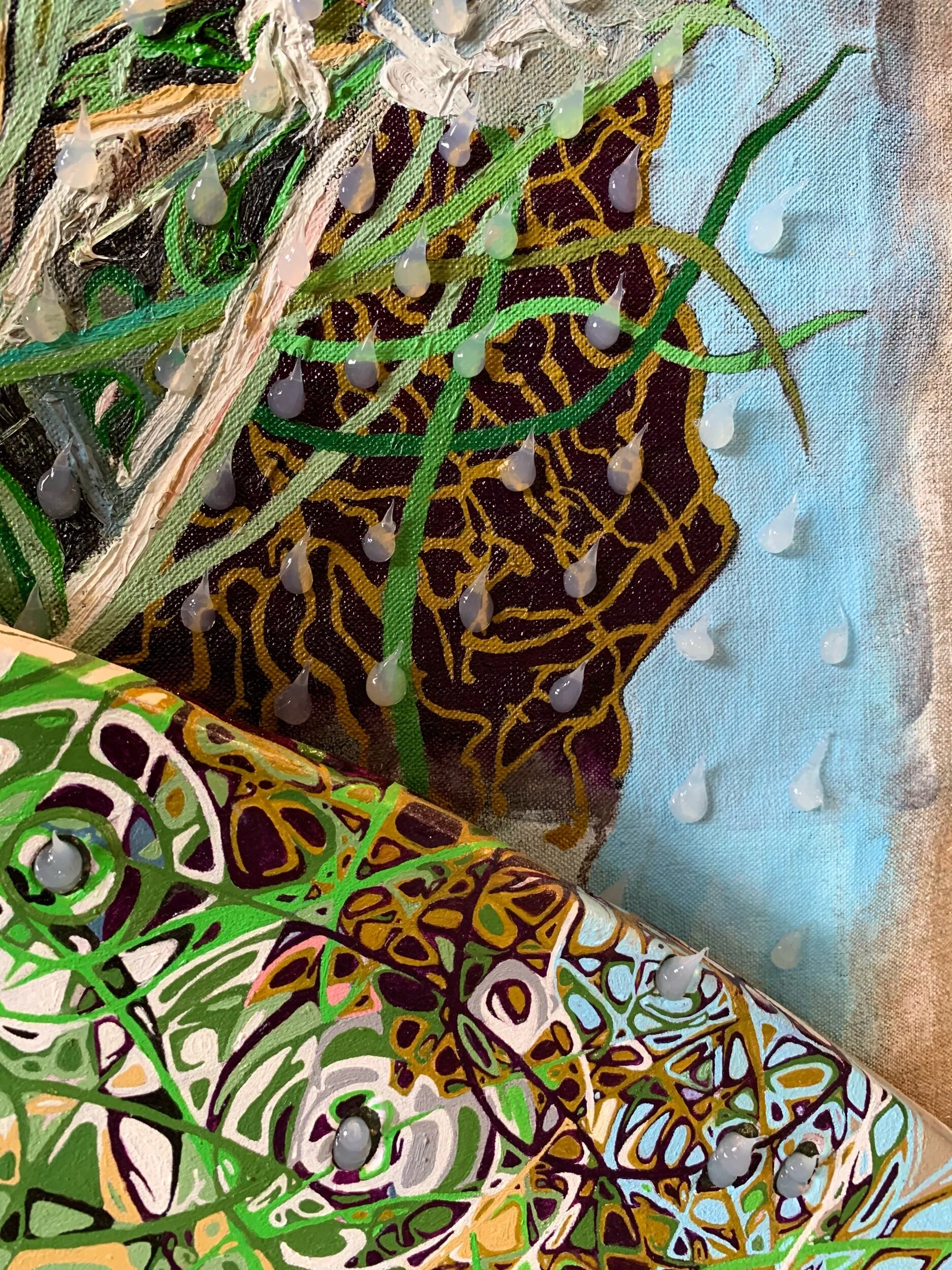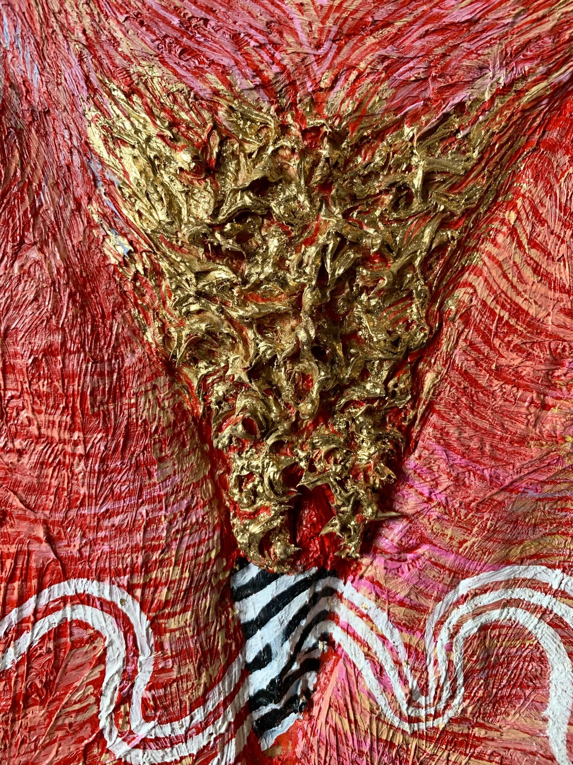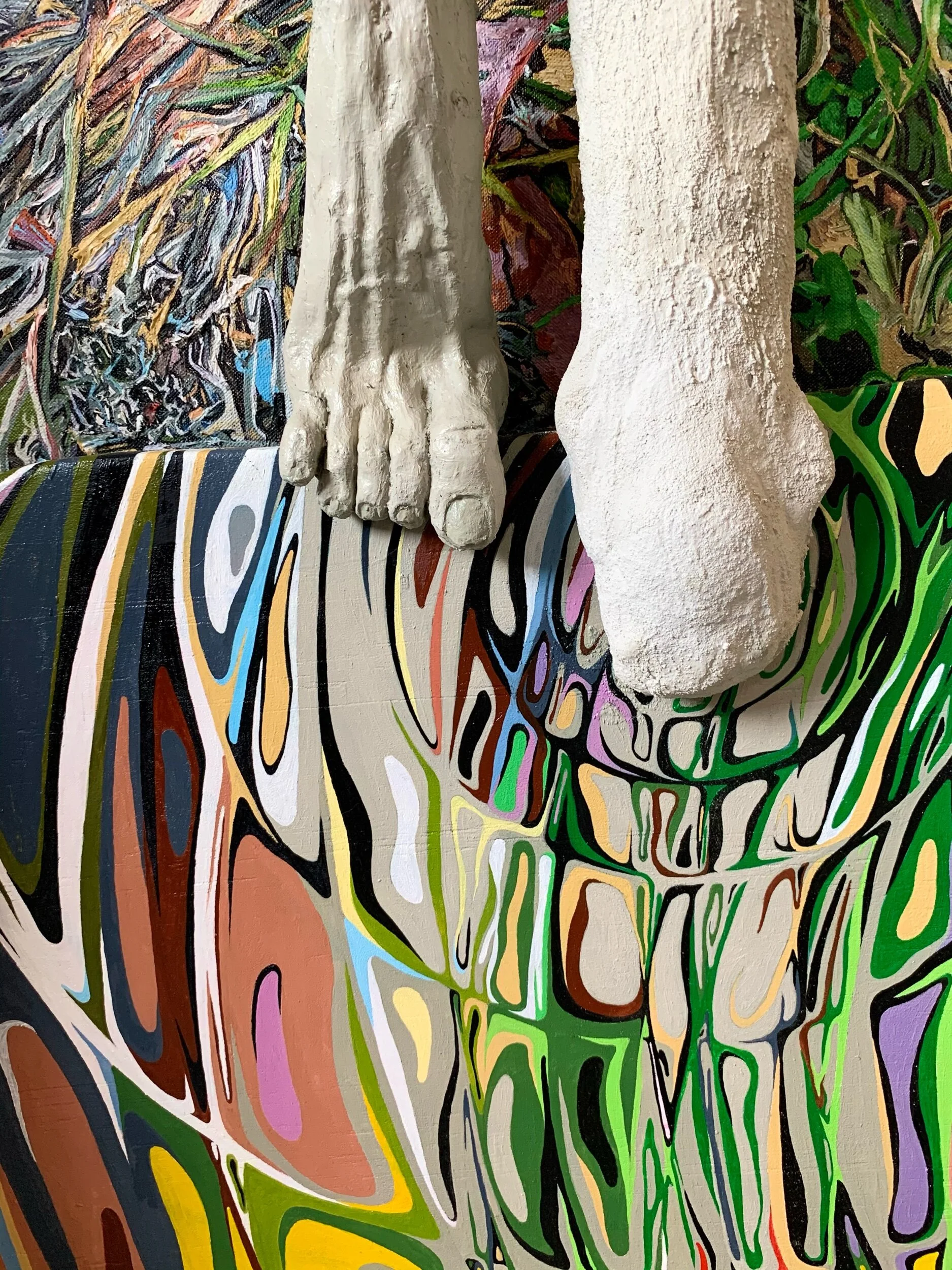 Oil, silicone, coins, gold leaf, canvas, panel and concrete