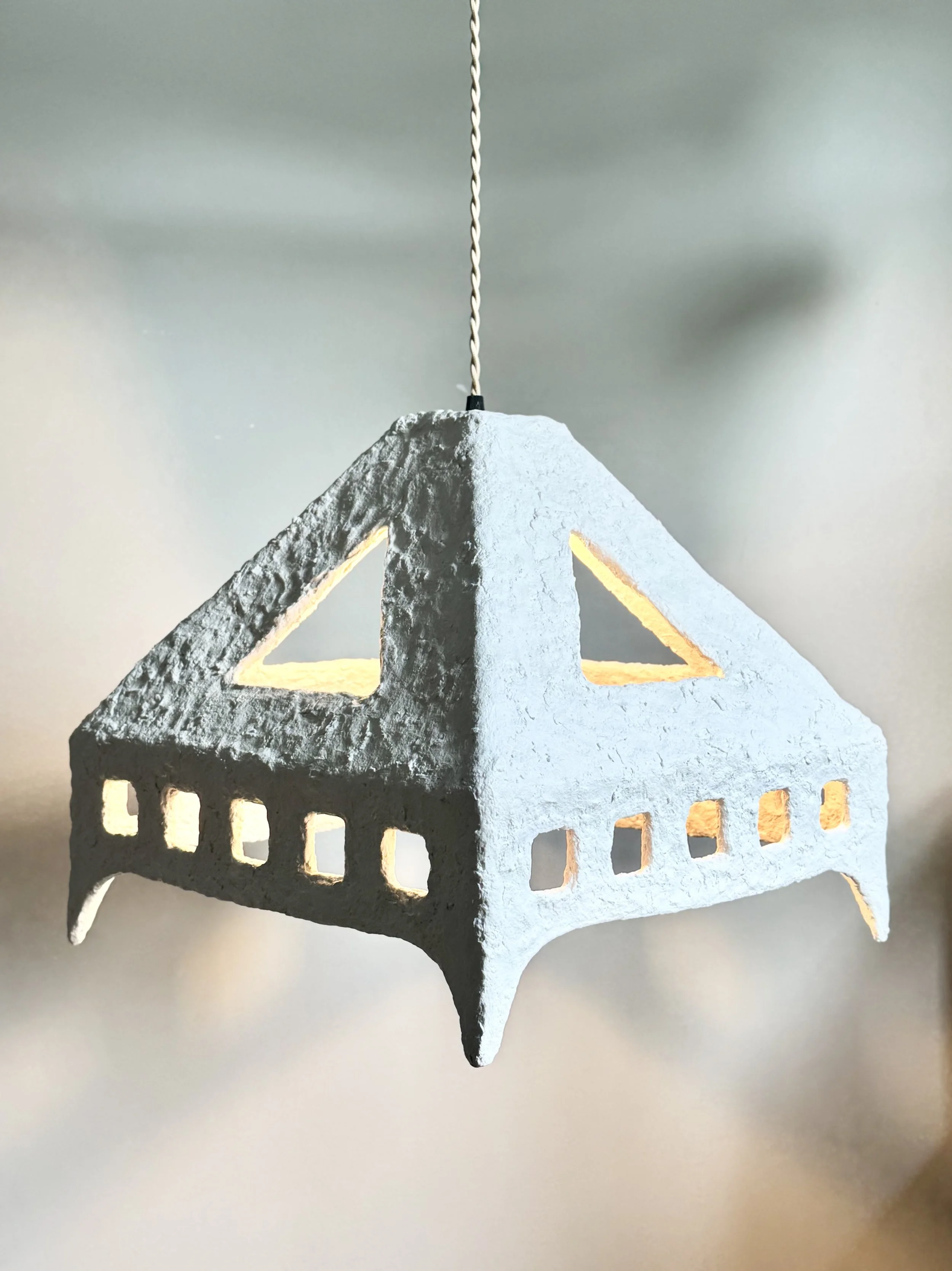 Pendant Light | 15" x 15" x 9" | paper mache, light hardware | 2025